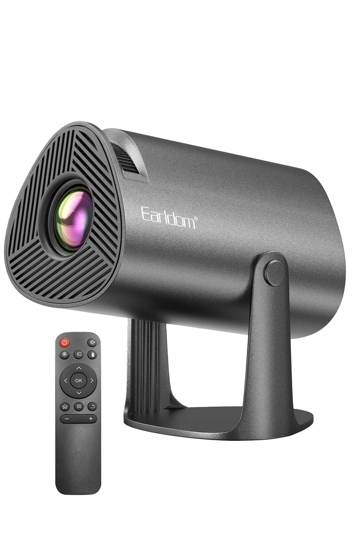 Earldom PJ04, Android işletim sistemiyle Netflix, YouTube gibi uygulamaları kablosuz oynatabilir. 4K video çözümlemesi, HDMI/USB bağlantıları, Bluetooth ve çifte bantlı Wi‑Fi, otomatik dikdörtgen düzeltme (keystone), 130″’a kadar canlı ekran ve sessiz <50 dB çalışma—“ürünün özellikleri ve faydaları” net.